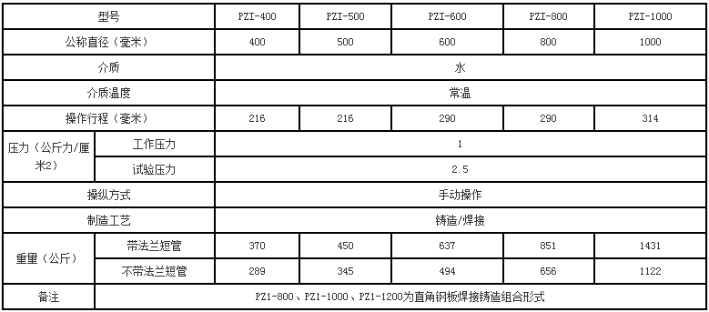配水閘閥技術參數(shù)