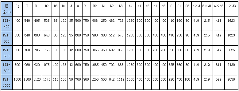 公稱通徑:DN400-1000mm