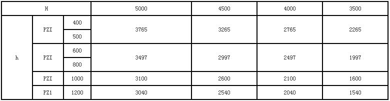 1、水泵房底板標高和水倉(或配水巷)入口標高之高差H與連接桿長度h值,本設計考慮四種情況,如下表所示:(單位:毫米)
